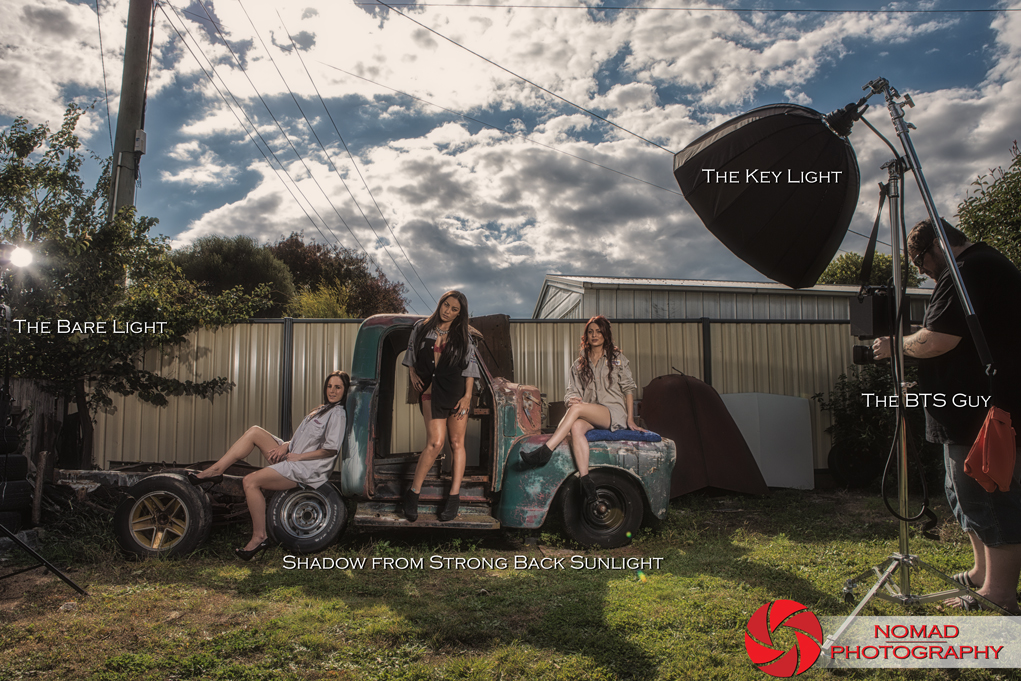 You can see on the grass that even my two lights fire to properly expose the models, the sun still has the most power and the rim light created by the sun is obvious on Brittney’s legs.