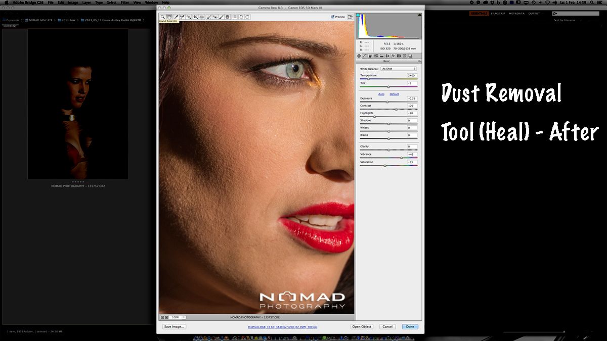 By selecting another tool, the healing brushes disappear to reveal the ‘after’ image processed in ACR.