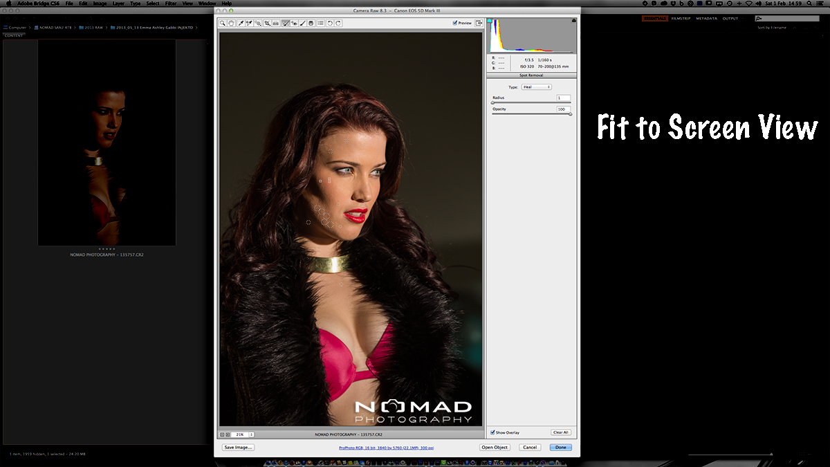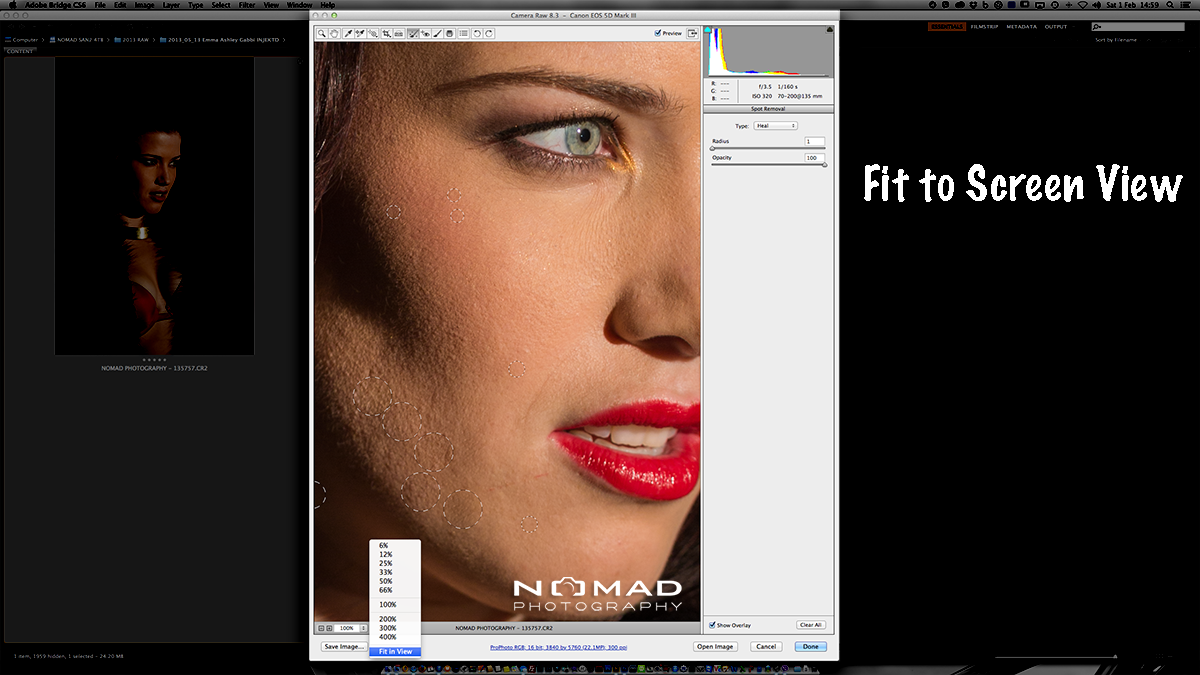 Fit to screen show the whole picture. Note the areas of the healing brush (Dust removal tool).